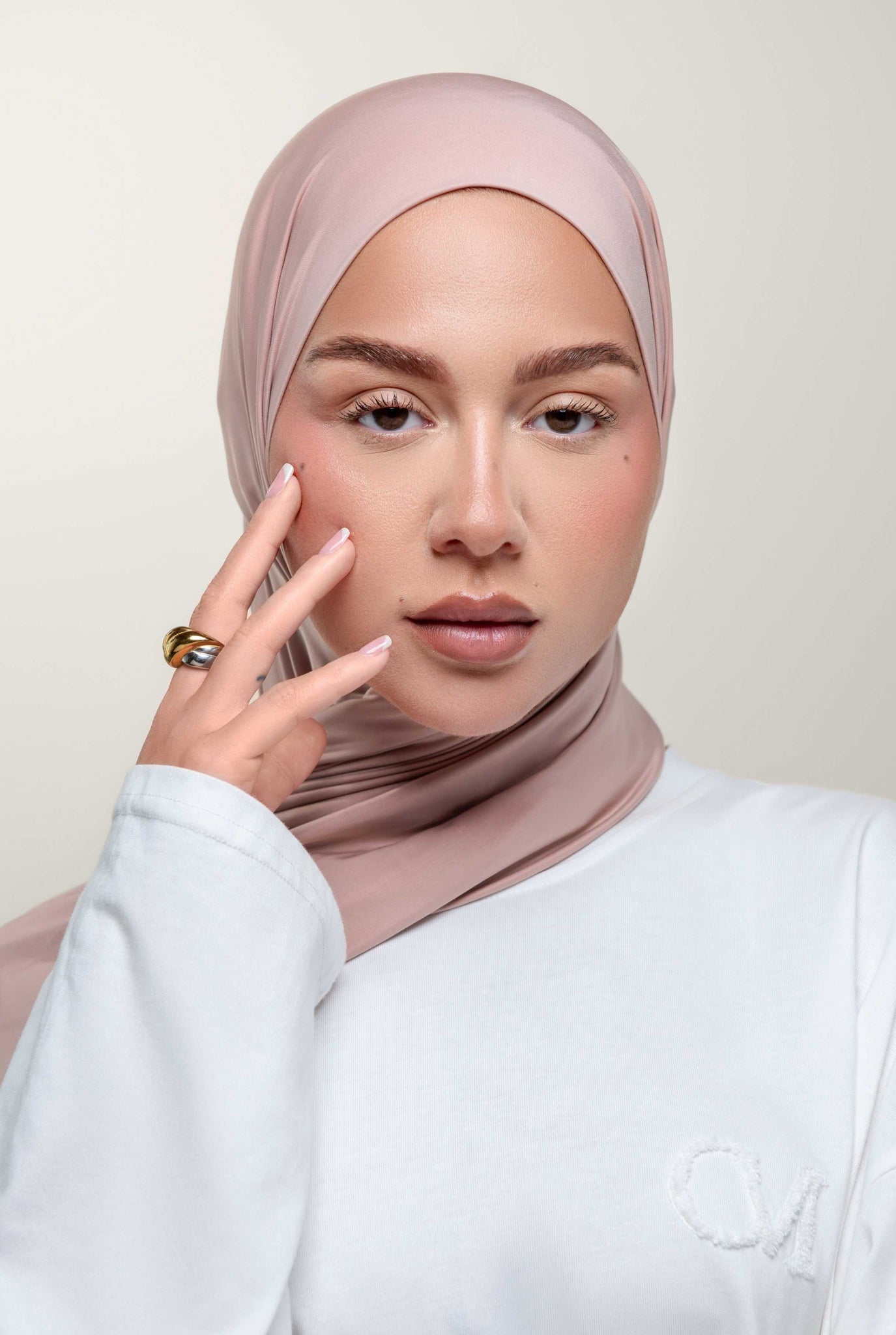 Découvrez notre voile d'exception SILK JERSEY , un tissu fluide et élégant qui séduit par sa souplesse incomparable. Légèrement nacré, il capte subtilement la lumière pour un rendu raffiné. Sa texture gainante épouse délicatement les formes tout en offrant une tenue parfaite grâce à sa« mémoire de forme » . Idéal pour un usage quotidien comme pour sublimer vos tenues lors d'occasions spéciales, ce voile allie confort style et élégance. Simple d'utilisation, vous pouvez le porter seul, sans ajouter un bonnet en dessous.