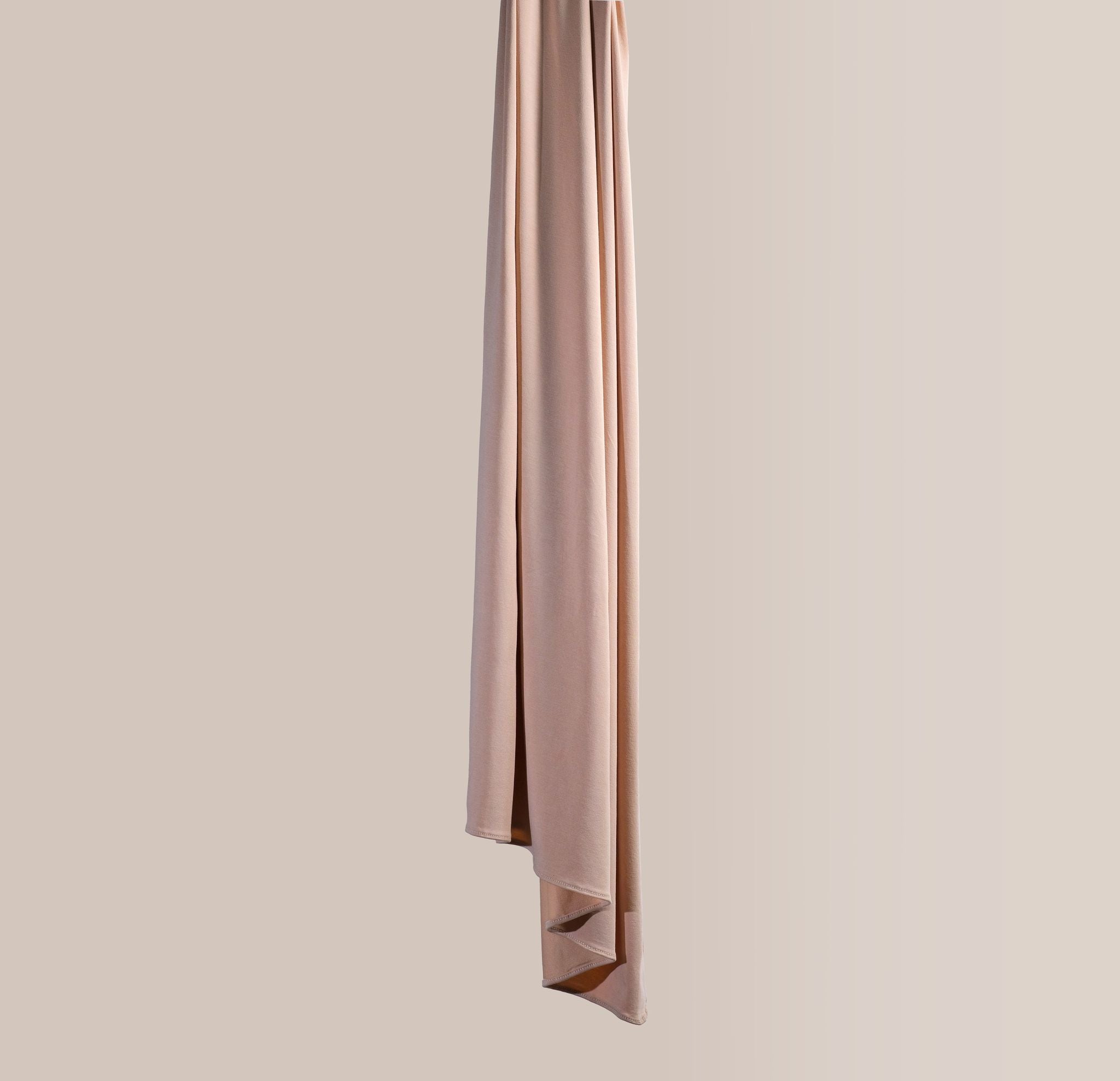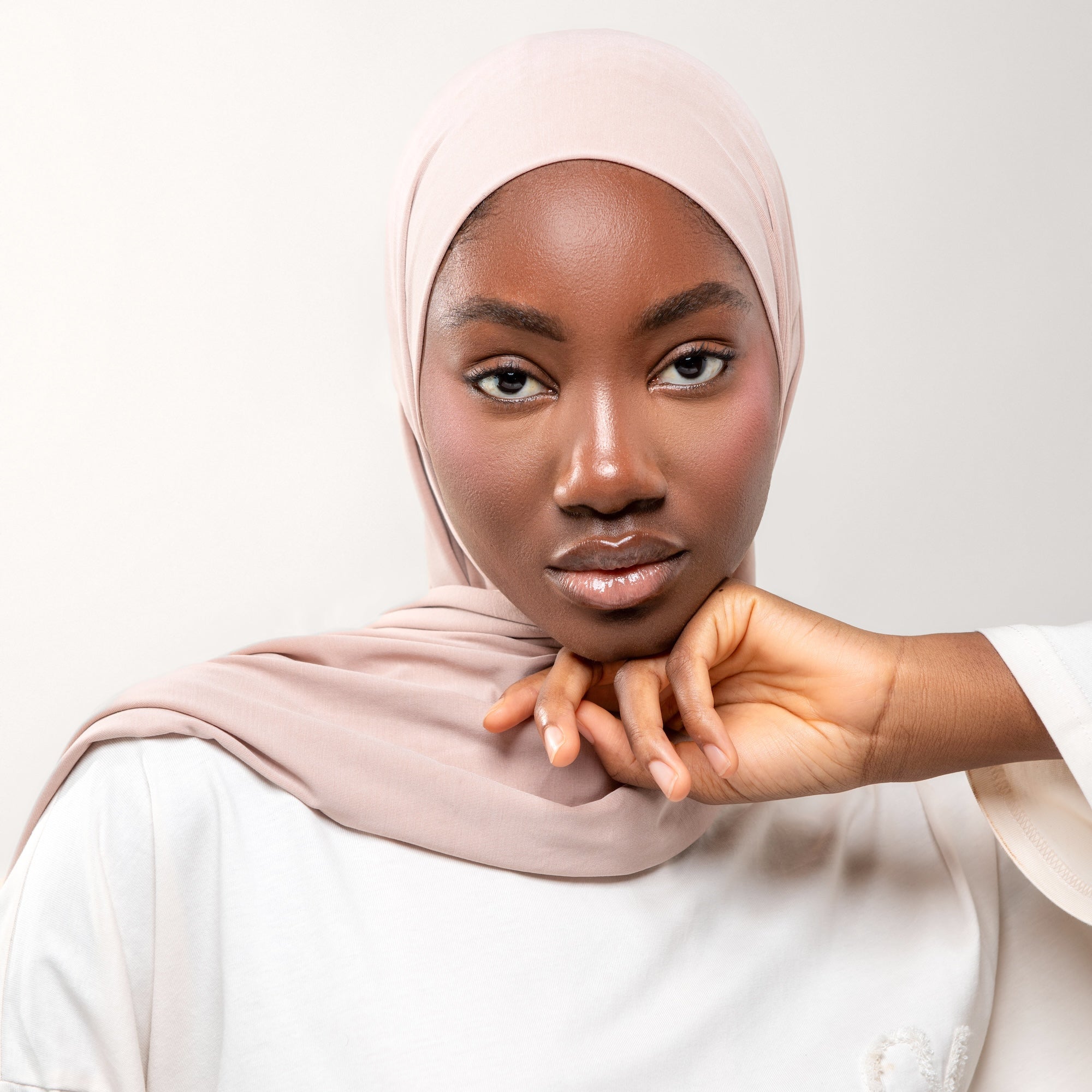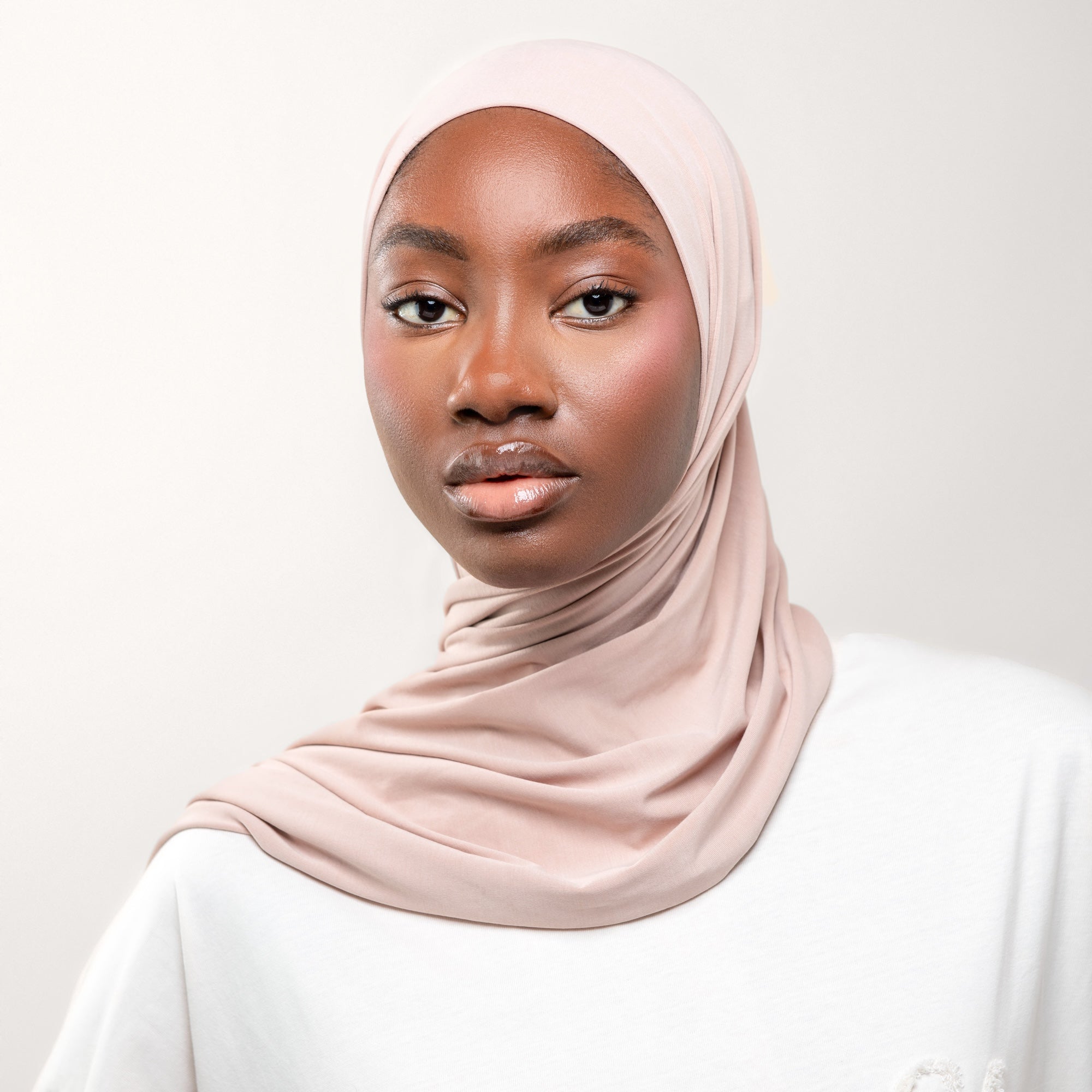 Le voile Greige est facile à utiliser et se porte sans nécessiter de bonnet en dessous. Sa matière gainante garantit qu'il reste bien en place sans glisser.